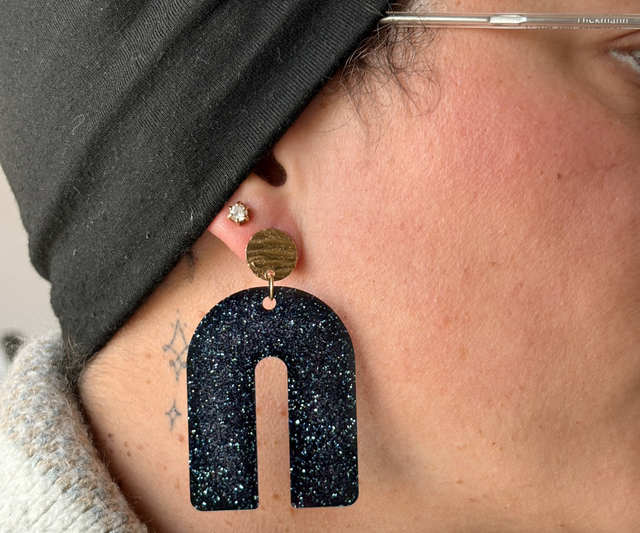 Boucles d’oreilles résine pailletées et acier inoxydable doré