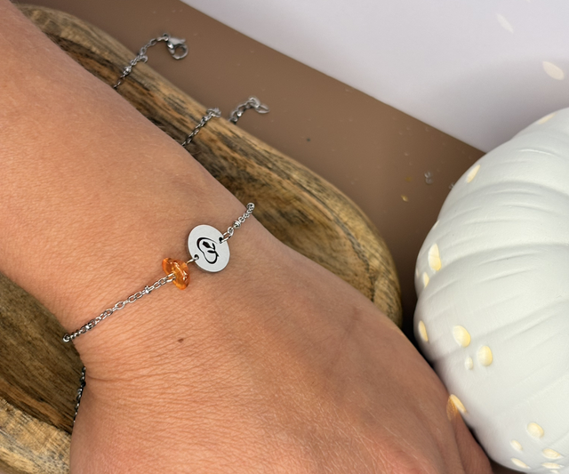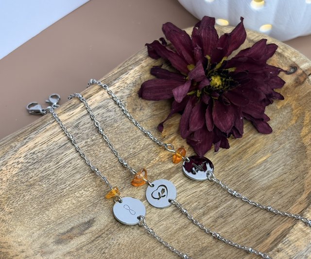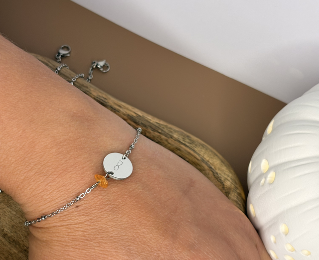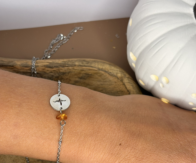 Ce bracelet en acier inoxydable et chips d’ambre est fait pour toi!☺️