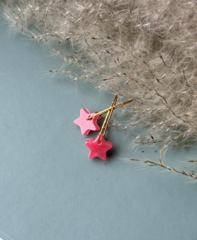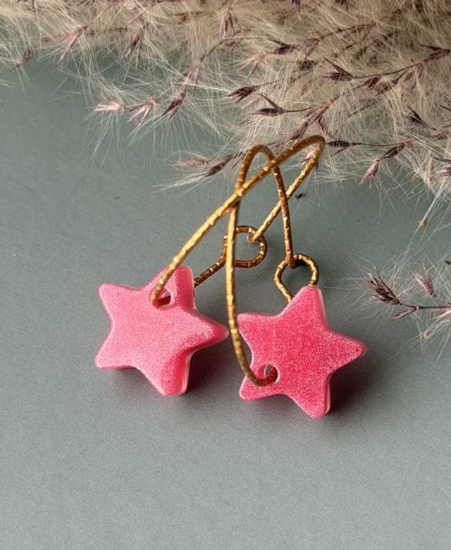 Boucles d’oreilles créoles acier inoxydable doré et pendant étoile en résine rose